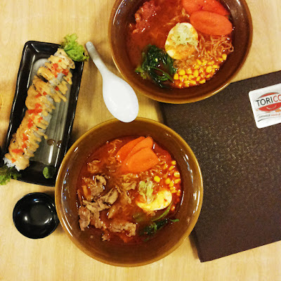 memiliki menu ramen, Torico Japanese Noodle & Rice menyajikan dua jenis ramen, yaitu ramen kering dan ramen kuah. Namun berbeda dengan restoran ramen pada umumnya Torico